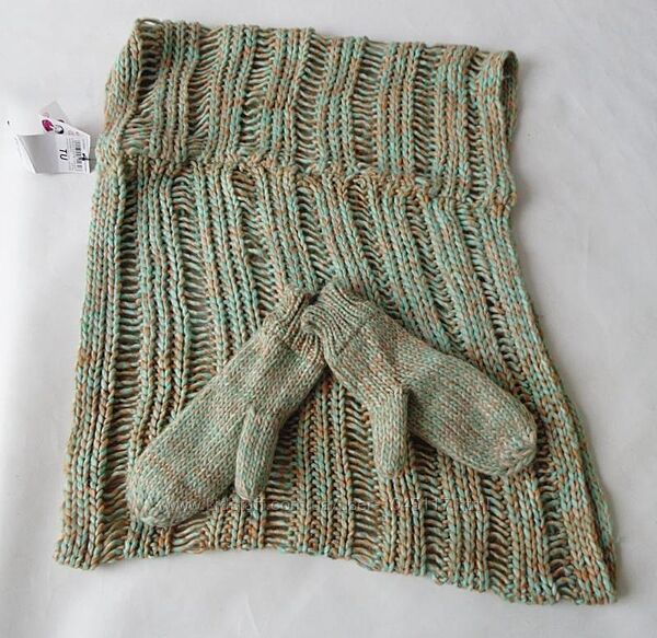 Подробное описание: Набор снуд шарф и варежки terranova меланжи салатовые акрил