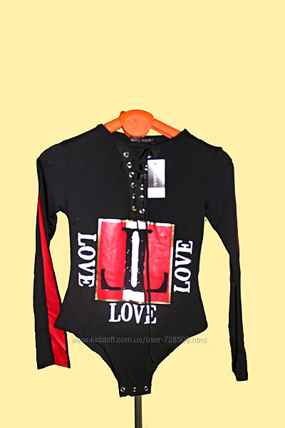 Представляю, Вашему вниманию, боди, выполненное в самых фешенебельных фантазиях дизайнеров. В дизайне, одеяния, сочтены самые модные тенденции, а именно: пикантная шнуровка, лампасы, контрастные надписи.