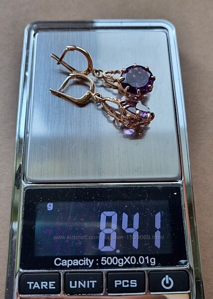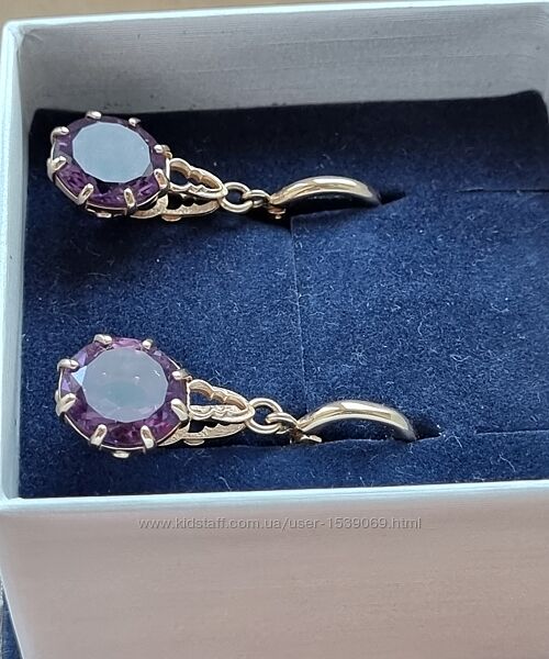 Шедевр ювелірного мистецтва Київського ювелірного заводу - сережки з натуральними аметистами, вага 8,41 г, проба 585! в ідеальному стані, як нові особисті колекції.Аметист здавна відомий як талісман, що позбавляє поганих емоцій і думок. Фіолетовий колір - символ "третього ока". Саме колір тісно пов´язаний із властивостями, що приписують мінералу: здатність створювати гармонійну, розслаблюючу обстановку, розвивати інтуїцію.