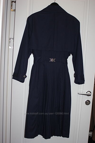 Шикарный синий трэнч плащ в винтажном стиле Together. Размер 52-54. В идеальном состоянии. Очень красиво садится по фигуре, особенно сзади-очень красивое плиссе.Длина общая 120 см, длина рукава 58 см, ширина плеч 49 см, ПОГ 63 см, ПОТ 65 см.