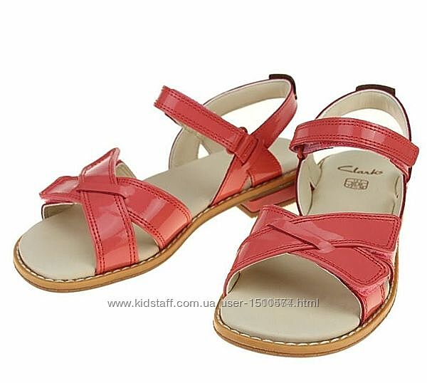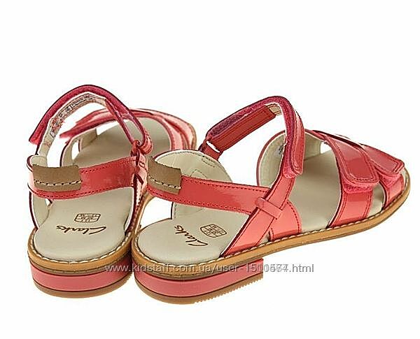 Clarks шкіряні босоніжки р.32.5Оригінал Зовні якісна натуральна шкіра коралового кольору