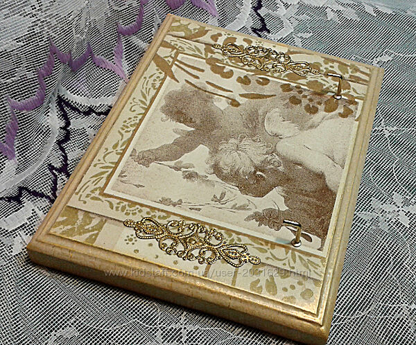 Маленькая деревянная ключница на 2 крючка ручной работы выполнена в технике декупаж. Размер 17*13,5*0,16 см. По кромке слегка состарена с помощью кракелюрного лака, покрыта полуглянцевым акриловым лаком на водной основе, декорирована филигранными элементами. Крепится на стену с помощью двух подвесов. Возврат не предусмотрен.