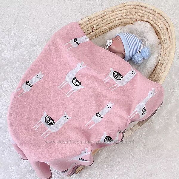 Подробное описание: Плед Детский Вязаный Хлопок - Покрывало Лама Пудровый