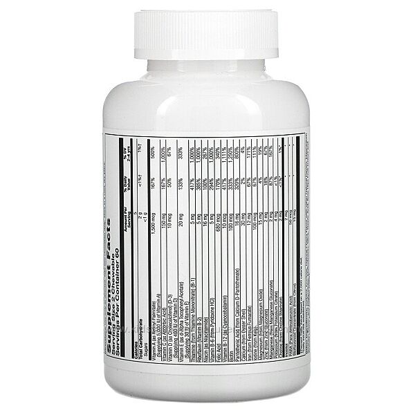 Смесь содержит все витамины от А до Е, включая все ее варианты. Каждая из этих жевательных таблеток также содержит некоторые металлы, такие как цинк, магний и железо (удобно для людей с дефицитом железа), чтобы улучшить общее состояние здоровья. Не содержит сахарозы, дрожжей, искусственных красителей и ароматизаторов.