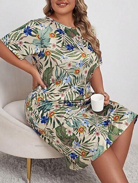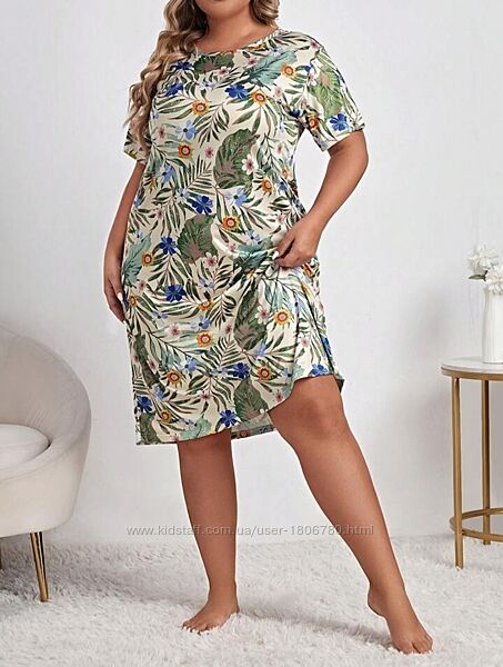 Подробное описание: Ночная рубашка или платье для дома больших размеров с тропическим принтом