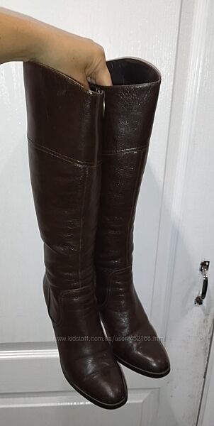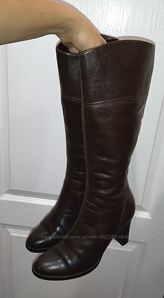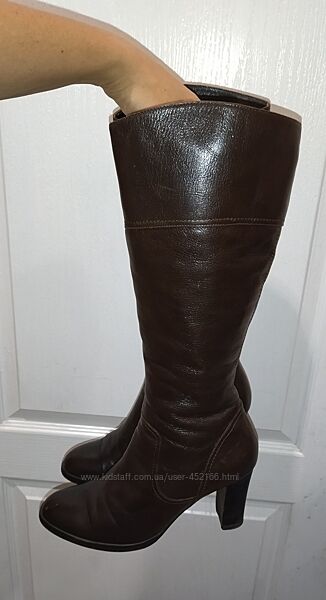Фирменные качественные сапожки в очень хорошем состоянии - на фото без крема. Размер 38, стелька 25-25,5см (полная длина)Каблук 8см, высота от пятки 36см, ширина по верху 18см и еще есть расширители