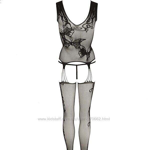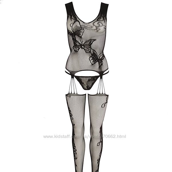 Комбінезон прикрашений чарівними метеликами, справді гарячий і чарівний верхній комплект, з яким ви можете оживити вечір або здивувати свою кохану для особливих випадків!Щільні, еластичні, м´які, напівпрозорі підтяжки і панчохи в сіточку з тонкими бретелями (незнімними) і посиленими краями.