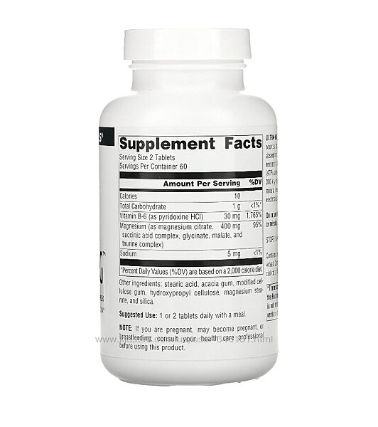 Подробное описание: Source Naturals, Магний, Магне В6, Ultra-Mag, 120 таблеток