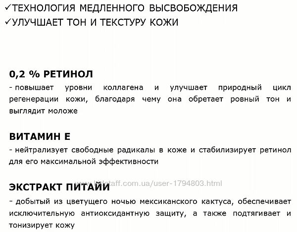 Ночной крем содержит 0,2% ретинола, что является идеальным введением в уход за кожей витамина А. Совершенное средство в борьбе с первыми заметными признаками старения кожи. Улучшает упругость и эластичность кожи. Питательный крем включает технологию выдержки во времени, что минимизирует вероятность раздражения. Быстро поглощается, глубоко увлажняет, не комедогенный, подходит для всех типов кожи.