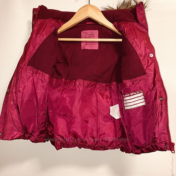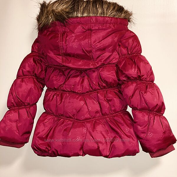 Дутая теплая курточка для девочек с интернет-магазина C&A, фирма Palomino 100% Polyester, сезон холодная весна-осень, еврозима Утепленная курточка красивого красно-малинового цвета, цвет смотрите на фото сайта, мой телефон цвет искажает! Наружный слой - полиэстер. Подклад - верхняя часть - флиска, нижняя - полиэстер, внутри упругий утеплитель. Капюшон не отстегивается, внутри капюшона и внутренняя часть воротника - флис. Курточка на молнии, по всей длине фиксируется кнопками Размер 104 Замеры р-ра 104: Длина изделия - 43 Ширина в груди (под рукавами) - 28-34 Ширина в плечах - 29 Длина рукава - 38+1