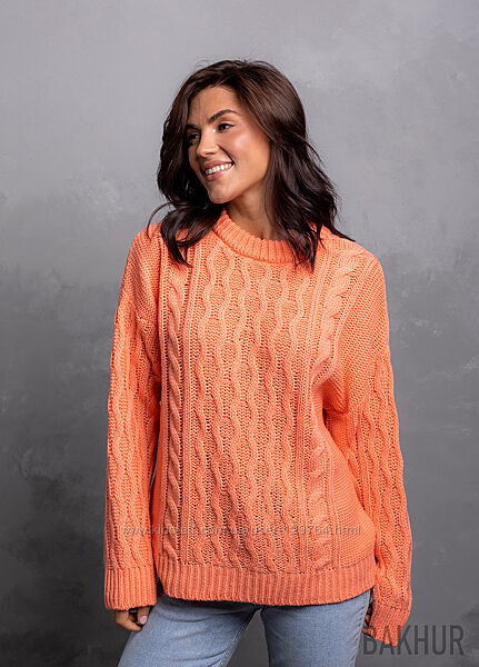 Стильний джемпер з приспущеним рукавом і з ажурним візерунком, шерстю і мохером від ТМ Bakhurв наявності
