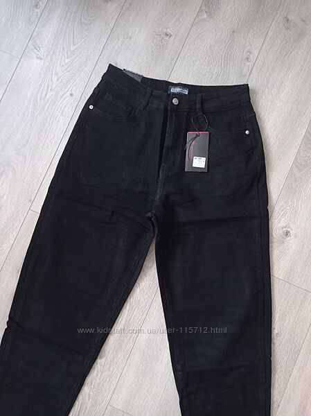 Relucky ДЖИНСИ-MOM чорні демісезонні СТРЕЙЧЕВІ в бальному розмірі. Висока посадка, широкі штаніни, до низу завужені.Модна і стильна модель. Якісна тканина джинса, якісний пошив. Джинси стрейчеві, тягнуться дуже гарно.