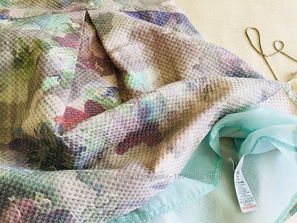 NEXT. Последняя коллекция. Фактурная парча с ярким цветочным принтом с золотой люрексовой нитью, шикарно переливается. Увы, фото не передает блеска. Натуральное! . Отлично держит форму. Состояние нового. Одето 1 раз. СЛЕДОВ носки НЕТ. Длина 63; подмышки 31Другие объявления продавца