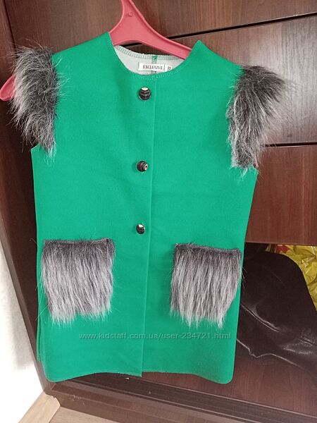 Детская жилетка для юных модниц с меховыми карманами, кашемир, размер 122,128,134. НоваяДругие объявления продавца