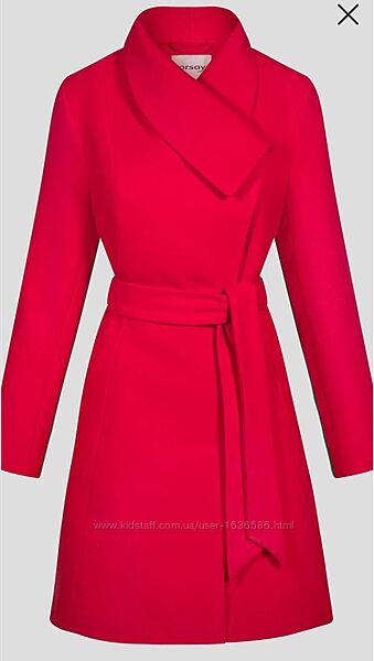 Пальто приталенного силуэта из плотного материала. Изделие с отложной горловиной и длинным рукавом. Модель на запах (внутри две потайние кнопки, на горловины также потайная пуговица) дополнена поясом, а также двумя передними прорезными карманами, Размер 40 на наш 50-52 размер.Замеры: