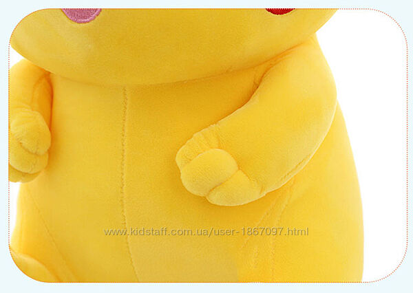 Мягкая игрушка Пикачу изготовлена из приятной на ощупь плюшевой ткани.