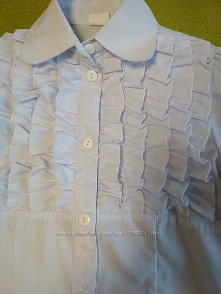 Продам очень красивую блузку для школы. Рост 134-140 см.Замеры: ПОГ 33,5 см, длина от плеча 46,5 см, длина рукава от плеча 51 см, ширина по плечам 28 см.Состояние отличное.