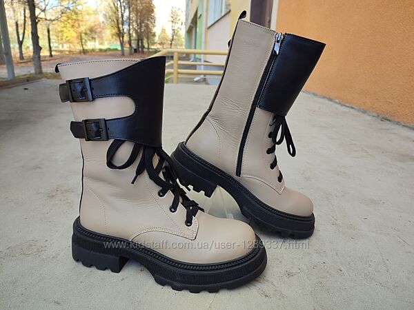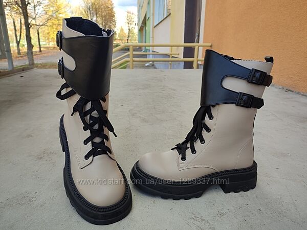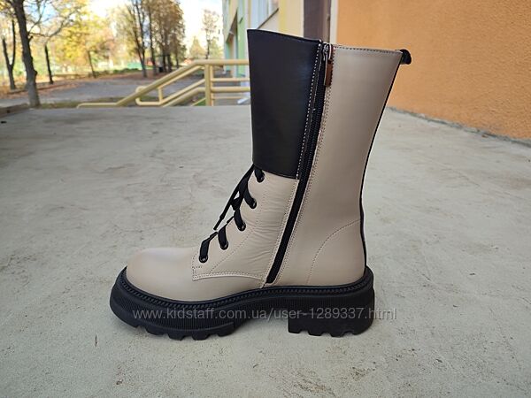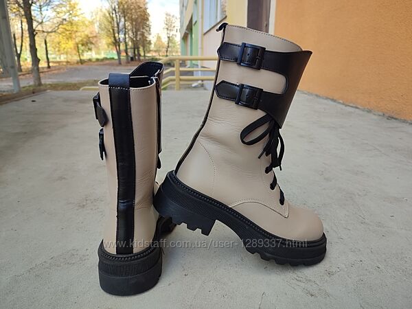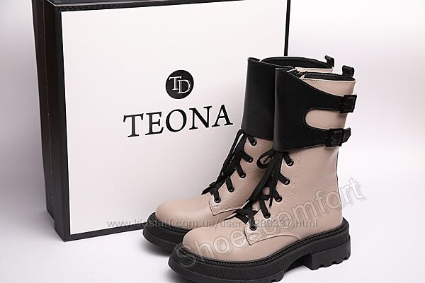 Подробное описание: Ботинки зимние Teona 21372 натуральная кожа бежевые с черным на платформе