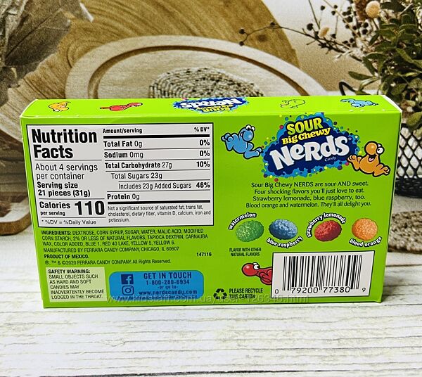Цукерки Nerds являють собою малесенькі драже з тонким льодяниковим покриттям і різними фруктовими смаками. Цукерки вперше надійшли у продаж у США в 1983 році і популярні досі.