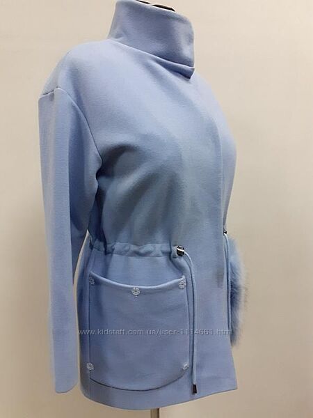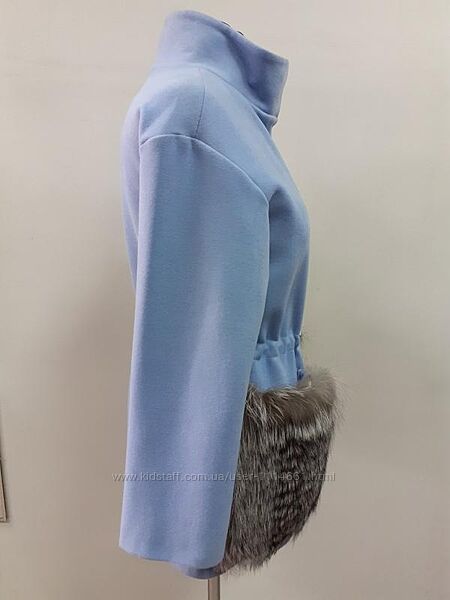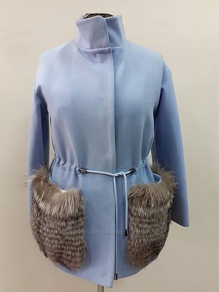 Подробное описание: Демисезонное пальто, яркое, голубое, с меховыми карманами zuhvala