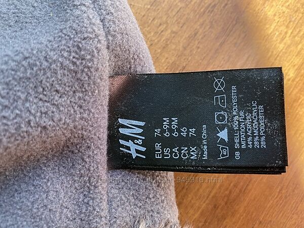 Шапка-вушанка для хлопчика Н&M.На вік 6-9 місяців, 74см.