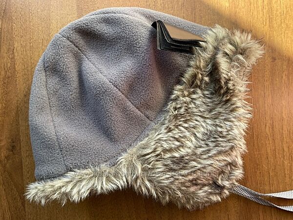 Тепла і зручна шапочка, флісова підкладка. На зав´язках. Можна зав´язати під шийкою або ззаду.