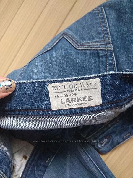 классические джинсы на болтах от "Diesel"/оригинал - модель larkee regular straight wash 0882w - указан 30W/32L - вещь б/у - внешне в отличном состоянии/на внутренних карманах есть катышки, нуждаются в незначительной глажкецвет: синий