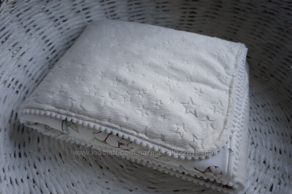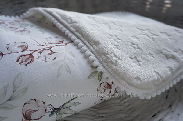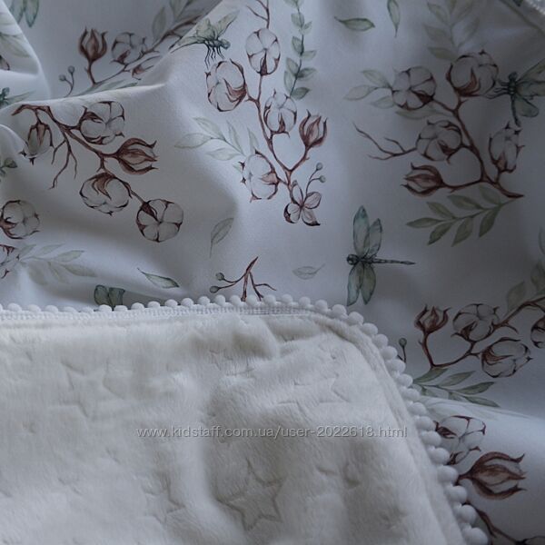 Утеплений плед для малюків, підійде для використання в кроватці, візочку, як конверт на випискуЗовнішній шар плюш в зірочки, колір молочнийПідкладка з польської бавовни преміум якості, цифровий друк, принт бавовна та стрекози