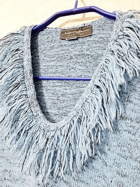 Супер безрукавка трикотажная, голубая, с оригинальной горловиной, бахрома, бренд Samie Nikole, USA.Размер Large.