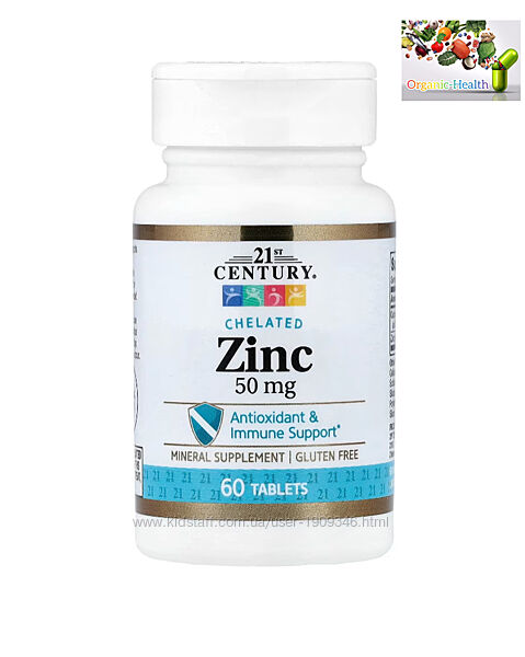 Подробное описание: 21st Century, Цинк , Хелат цинка 50 мг, 60 таблеток