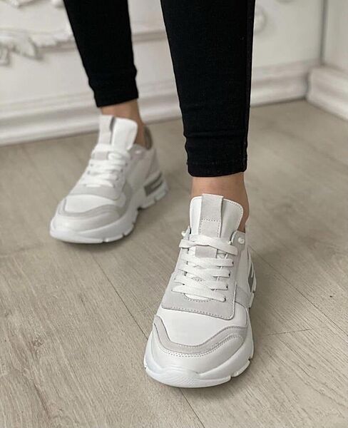 Подробное описание: Кроссовки женские EMELI 821/1 белые весна-осень натуральная кожазамша