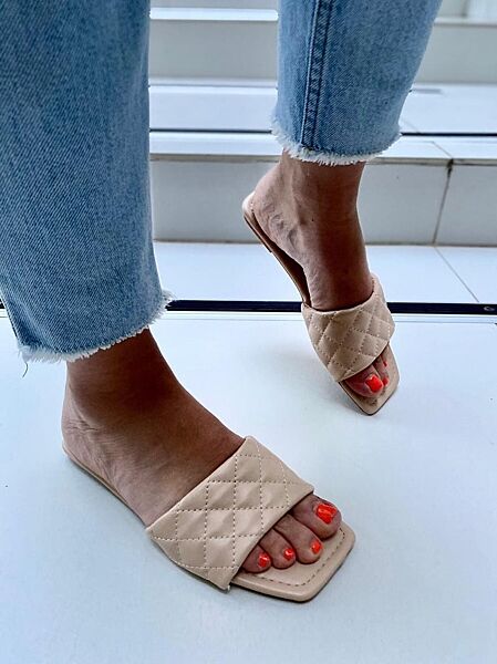Шльопанці жіночі Kamengsi S196-1 бежеві літо еко-шкіра