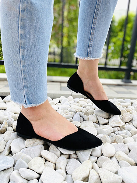 Балетки жіночі TEE Tspace ND153-2 чорні весна-осінь еко-замш