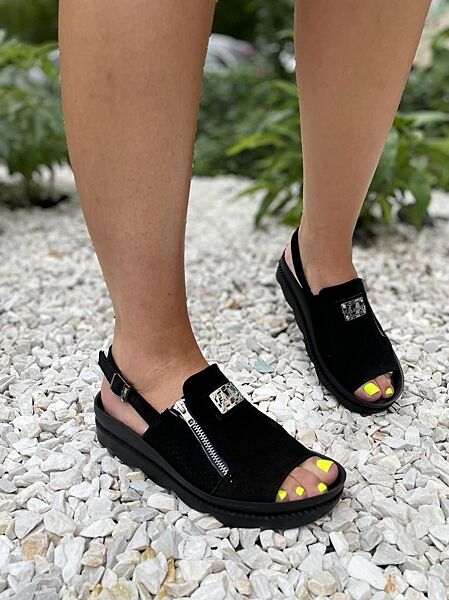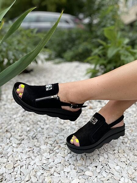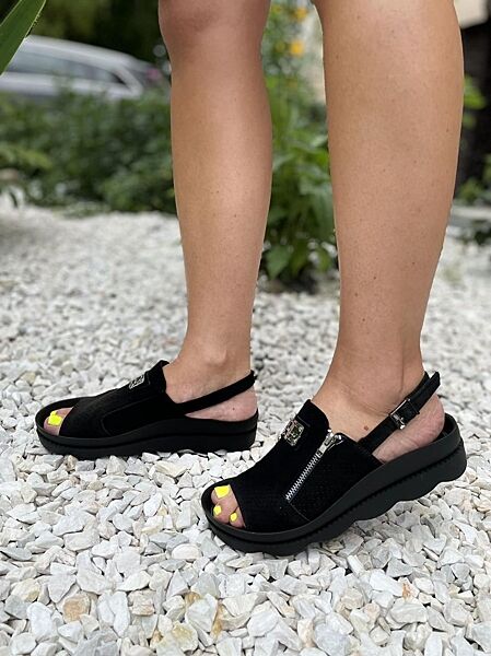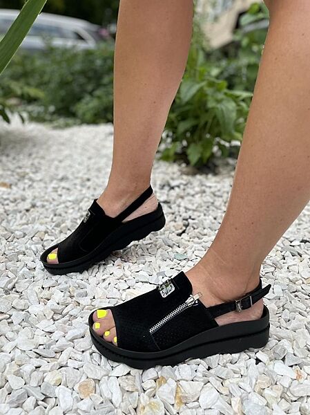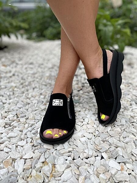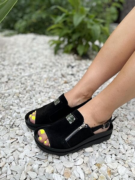 Босоніжки жіночі VIKTTORIO Рима чорні літо замша натуральна