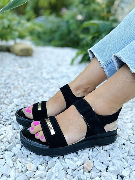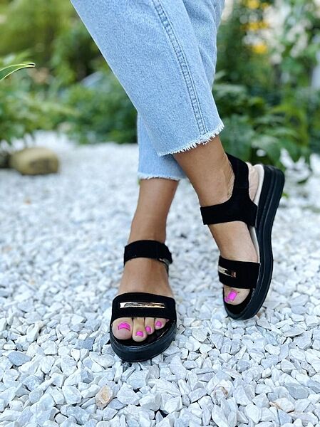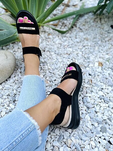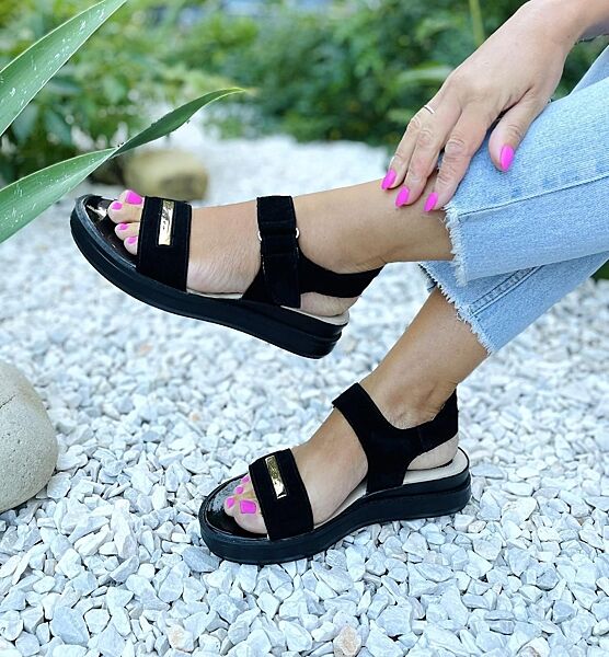 Босоніжки жіночі KENTO 3225/1 чорні літо замша натуральна