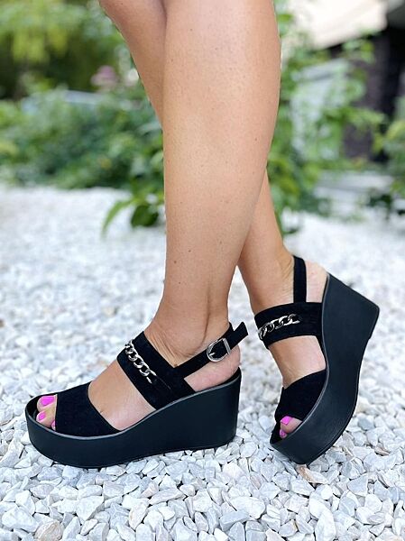 Босоніжки жіночі VIKTTORIO Кароліна чорні літо замша натуральна