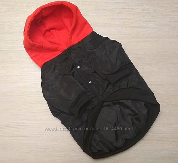 Стильная, теплая курточка бомбер с капюшоном для любимых курносиков! Цвета - черный с красным капюшоном, синий с белым капюшоном. Утеплитель силикон, снаружи болонья, внутри на гладкой подкладке, капюшон на тонком синтепоне. Застегивается на животике на кнопки. Подойдет для пород французский бульдог, мопс. Качественная, мягкая и приятная на ощупь, ткань не шуршит.