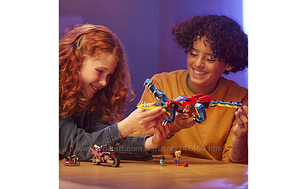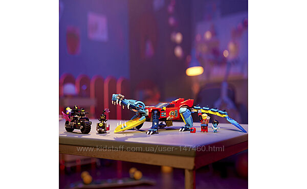 Настраиваемое транспортное средство. Дети могут наслаждаться творческой игрой с набором игрушек LEGO® DREAMZzz Крокодиловый Автомобиль (71458), который позволяет им собрать 1 из 2 транспортных средств.2 способа сборки. Дети могут собрать автомобиль в виде автомобиля-крокодила или сверхбыстрого внедорожника.Режим крокодила. В режиме крокодила транспортное средство стреляет дисками из решетки радиатора (рота крокодила) и имеет подвижные руки и ноги, чтобы детям было легко играть и создавать приключения.Внедорожный режим. Во внедорожном режиме у автомобиля есть катящиеся колеса и крыша, которую можно снять, чтобы дети могли посадить внутрь минифигурку.3 минифигурки. В набор входят минифигурки Купера, Джейдена и Ночного Охотника.Групповая или одиночная игра — набор предназначен для детей в возрасте от 8 лет и старше, которые могут часами весело играть в одиночку или с друзьями.Размеры. В самой большой форме модель имеет размеры более 8 см в высоту, 45 см в длину и 15 см в ширину.