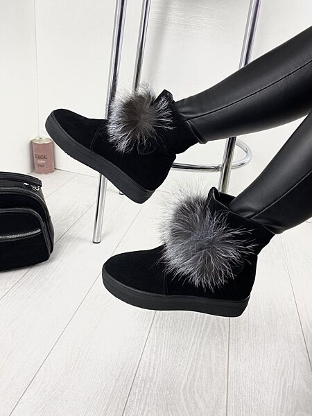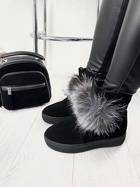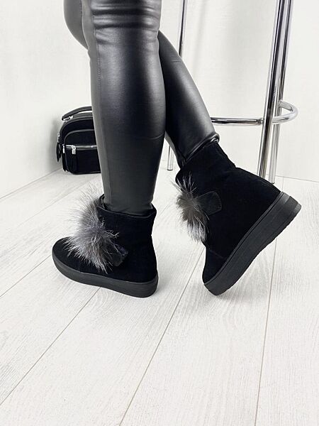 Угги женские ITTS TY3001 чёрные зима замша натуральная