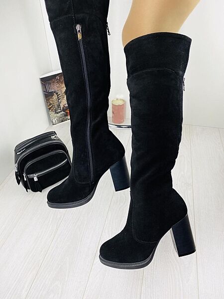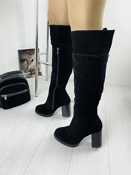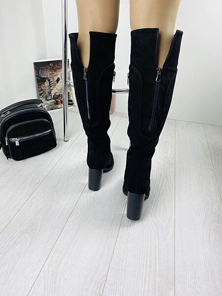 Сапоги женские Odzi C-9224 чёрные зима евро-мех замша натуральная
