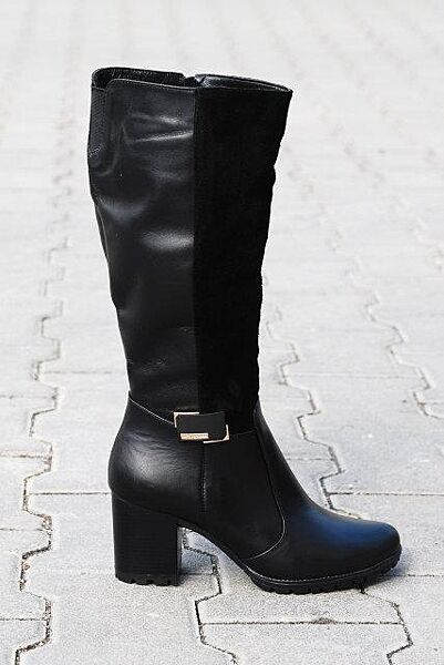Сапоги женские ARLETT 604 чёрные весна-осень кожазамш натуральная