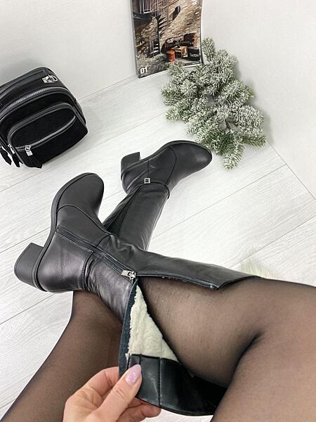 Сапоги женские Odzi C 513/2 чёрные зима кожа натуральная