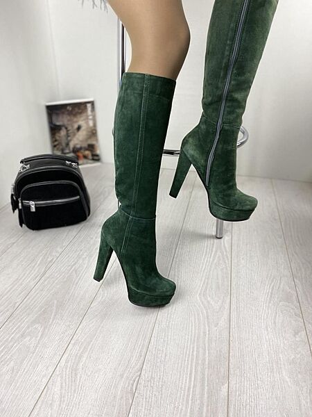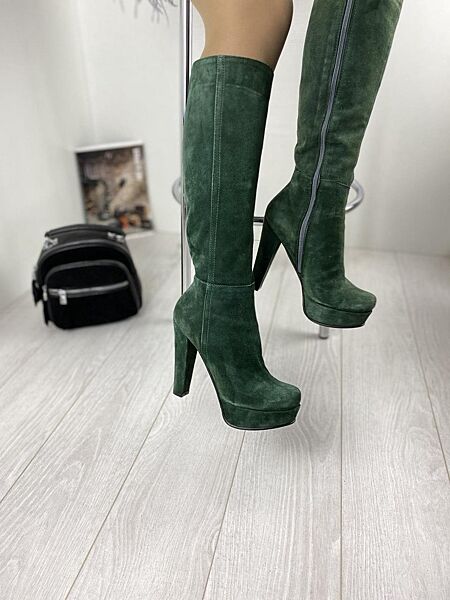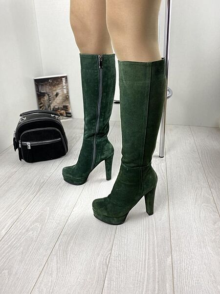 Производство Украины, фабрика Nivelle , использует только натуральное сырьё!!! Материал: натуральная замша ( турецкая) Цвет: тёмно- зелёная замша! Качество высшее! Внутри итальянская байка Змейка на всю длину сапога! Высота сапога: 36см-37см. Обхват голени: 33-35см. Каблук: 11.5см., спереди подиум 2.5см Очень удобная турецкая колодка ! Стелька: Только: 36р.-23см. 37р.-24см Бренд: NivelleПредложения от магазина