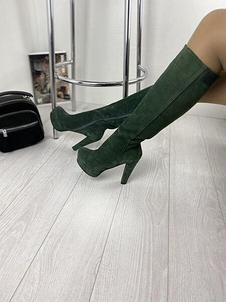 Подробное описание: Сапоги женские NIVELLE 5134 тёмно-зелёные весна-осень замша натуральная