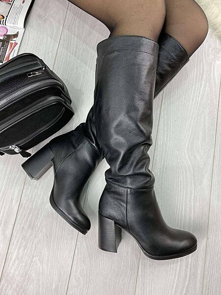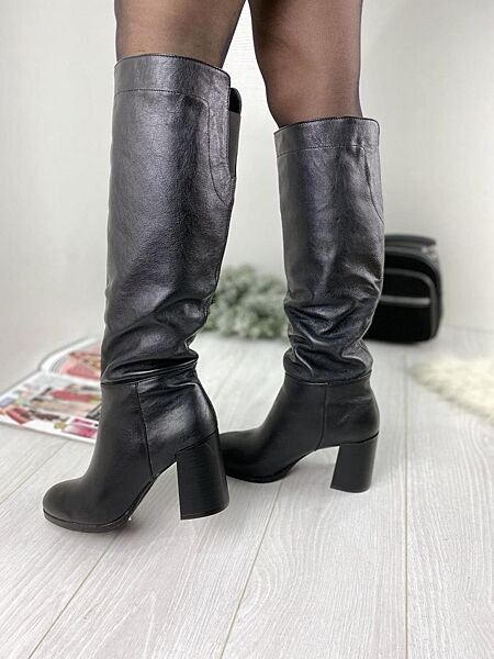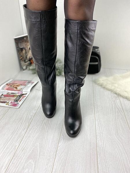 Сапоги женские Injers 754 черные зима кожа натуральная