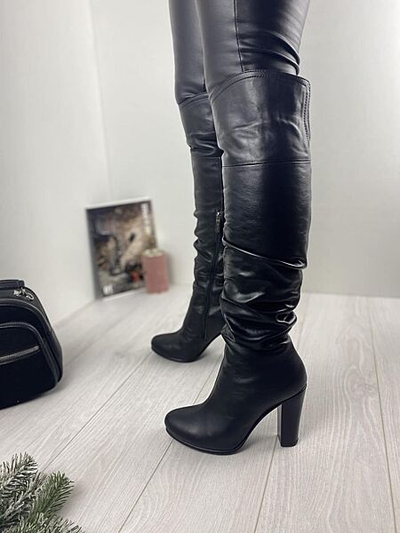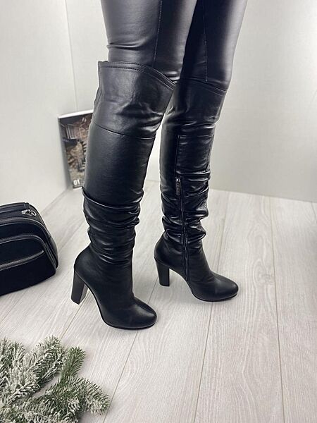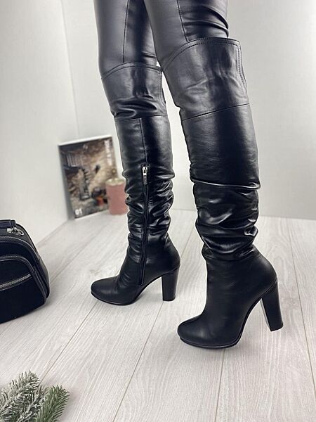 Производство Украина Материал верха: кожа натуральная Внутри: натуральный мех ( по косточку). Высота от пятки :46см. Каблук :10см. Обхват голени : 34-36см. Стелька: Только: 38р.-24.5см. 40р.-25.5см. Все фото у нас живые без фотошопа и обработки . Oбмен и возврат возможен (за счёт покупателя) Есть наложка Новой Почтой (с предоплатой 100-150грн.) УкрПочта наложка (с предоплатой50гр.) А в некоторых случаях можно (без предоплаты).Предложения от магазина