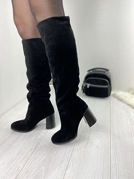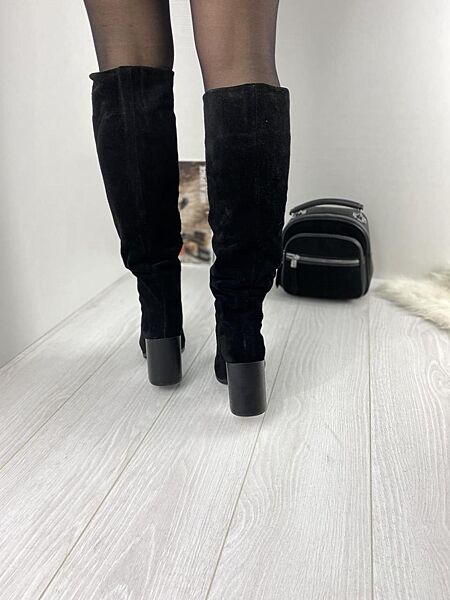 Сапоги женские Injers 752 черный весна-осень замша натуральная