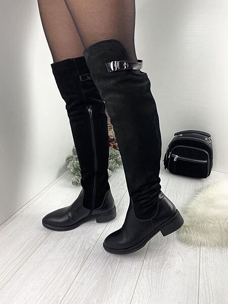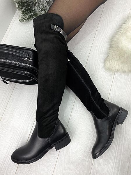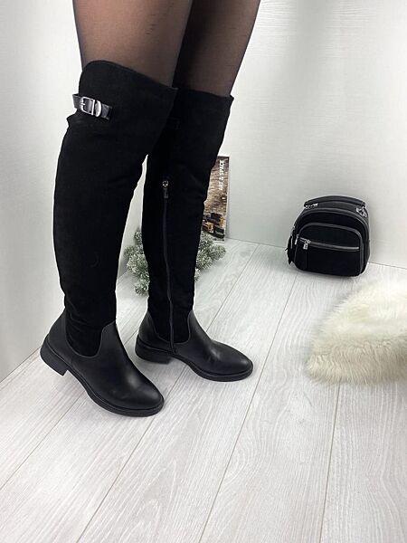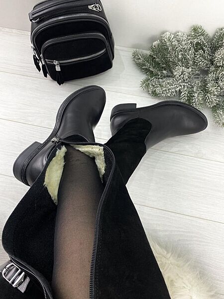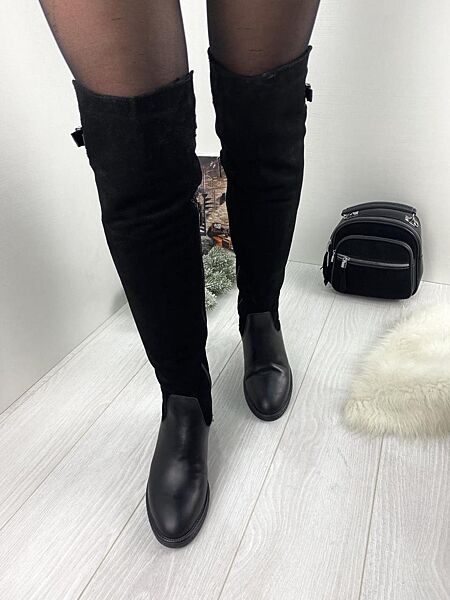 Женские ботфорты Vesna 2411 чёрные зима кожазамш натуральная