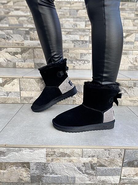 Угги женские OUQIDAGENI 8072-1 чёрные зима замша натуральная