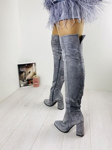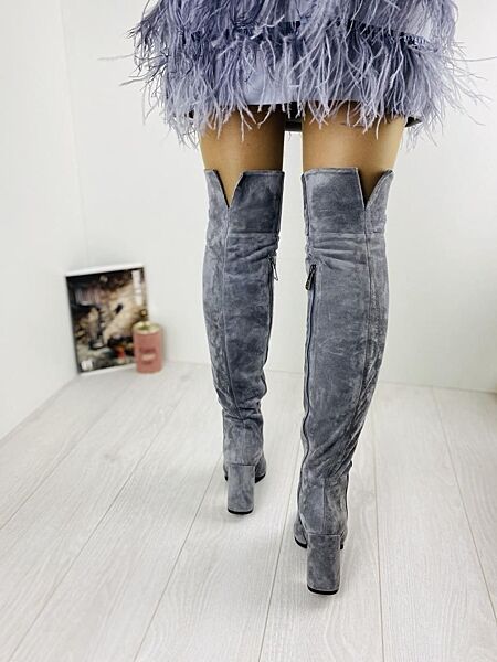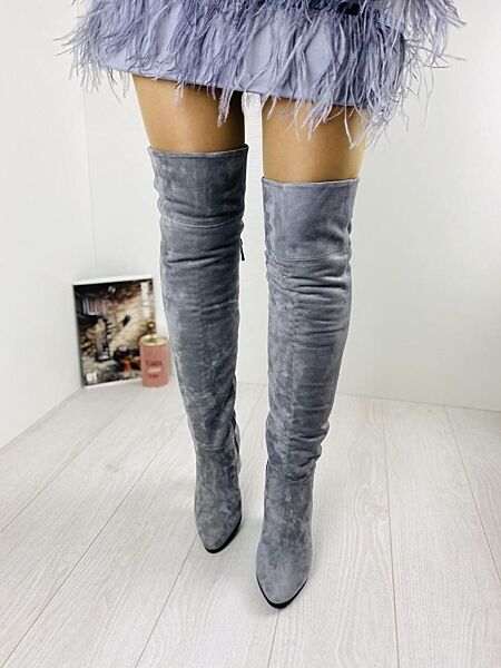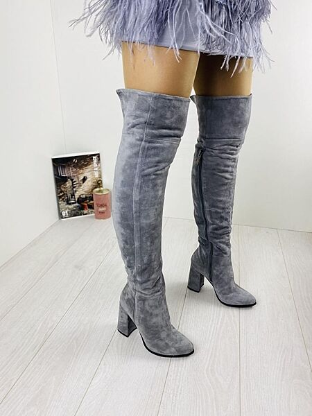 Производство Украины Материал верха: натуральная замша Внутри: байка Высота :50см. Обхват голени :35-37см. Каблук: 9см. Идут на стопу: 35р.-22.5см. 36р.-23см. 37р.-24см. 38р.-24.5см. 39р.-25см. 40р.-26см. Все фото у нас живые без фотошопа и обработки .Предложения от магазина